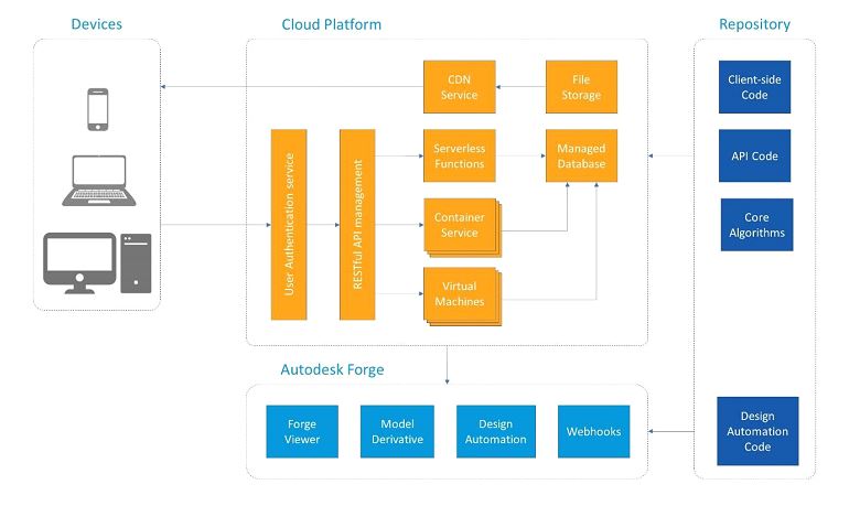 The CCTech engineers made it possible with Lambda (an event-driven, serverless computing platform provided by Amazon as a part of Amazon Web Services) and Forge (Forge is Autodesk's cloud development platform that allows you to integrate Autodesk SaaS products into your workflows and/or to embed some of the components into your own web or mobile applications).